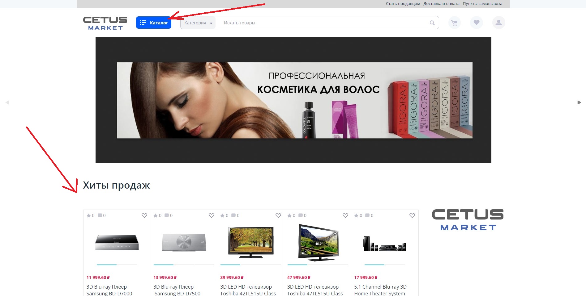 Перейдите в "Каталог" или выберете интересующую категорию с товарами.