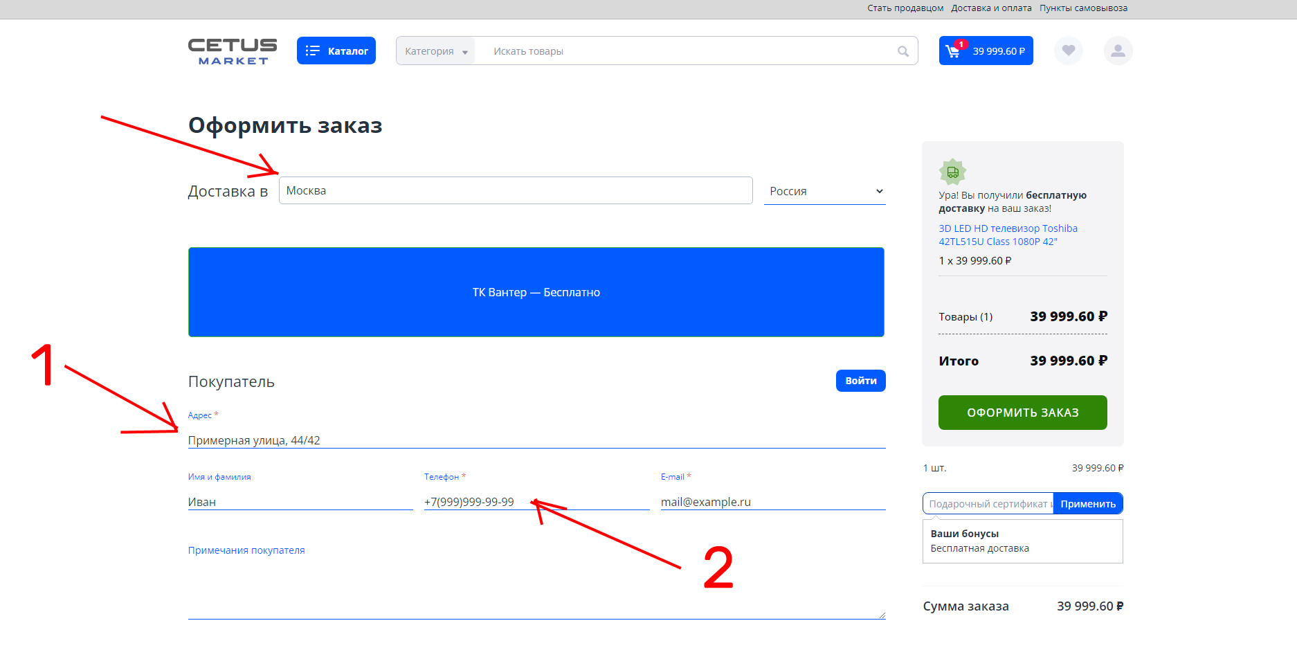 После добавления товара в корзину, вы можете перейти к оформлению заказа.
